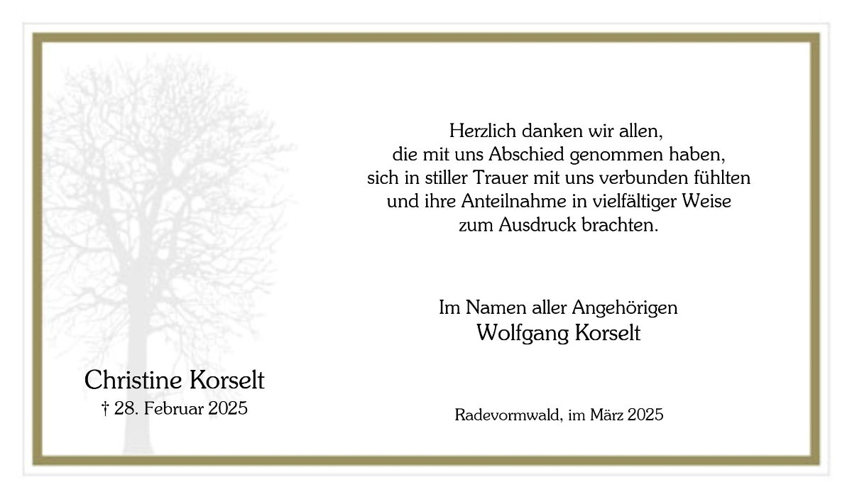 wir wünschen Ihnen für die kommende Zeit viel Kraft und dass es Ihnen gelingt, dankbar auf die positiven Erinnerungen zurückzublicken. Diese Gedenkseite möge Ihnen dabei helfen, Ihre Trauer zu teilen und das Andenken gemeinsam wachzuhalten.