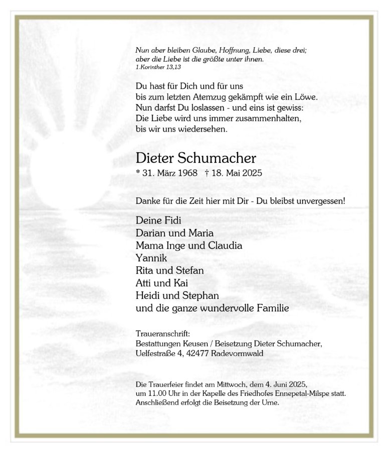 in dieser Zeit des Schmerzes wünschen wir Ihnen Kraft, den Verlust im Kreise Ihrer Liebsten zu verarbeiten. Als Zeichen unserer Anteilnahme und des Gedenkens entzünden wir dieses erste Licht. Möge diese Gedenkseite Ihnen helfen, Erinnerungen zu teilen und so das Andenken gemeinsam wachzuhalten.