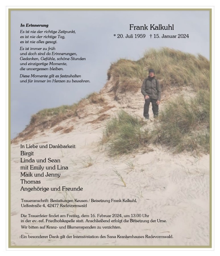 Unser Mitgefühl in den schweren Stunden und unser herzlichstes Beileid gelten Dir liebe Birgit und Deiner Familie.
