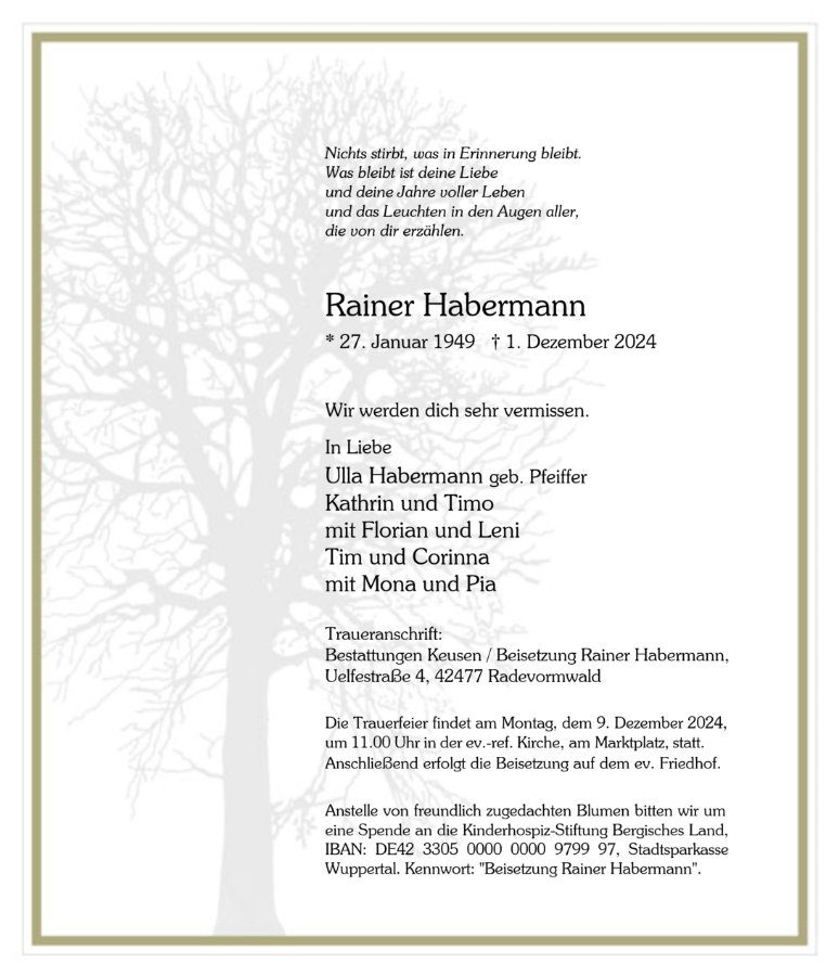 Auch ich möchte mein aufrichtiges Beileid zum Tod von Rainer aussprechen.