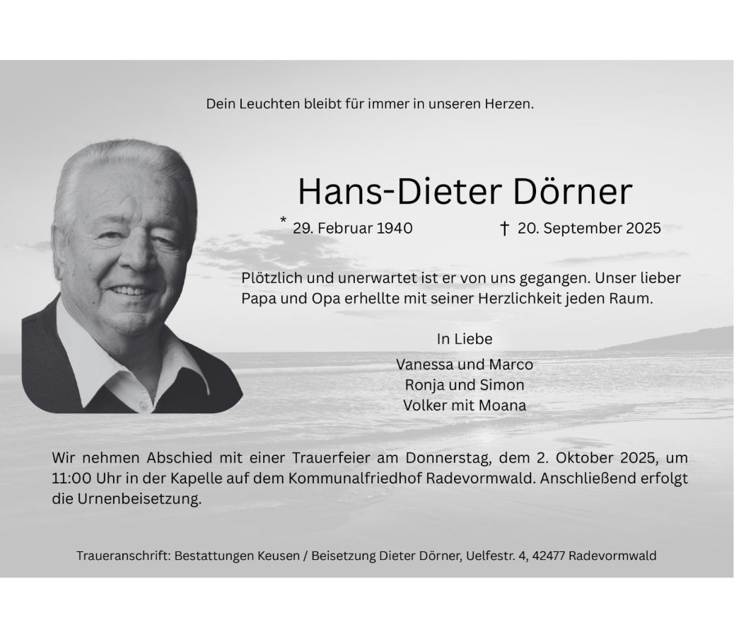 wir sind in Gedanken bei euch und trauern mit euch um Dieter. Mögen euch die Erinnerungen an ihn soviel Trost schenken, wie uns.