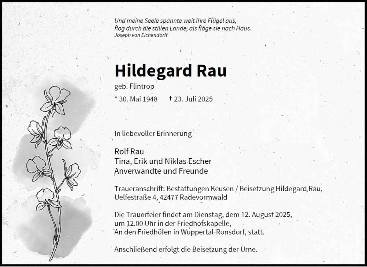 Hildegard beschützt jetzt Ihre lieben Hinterbliebenen.