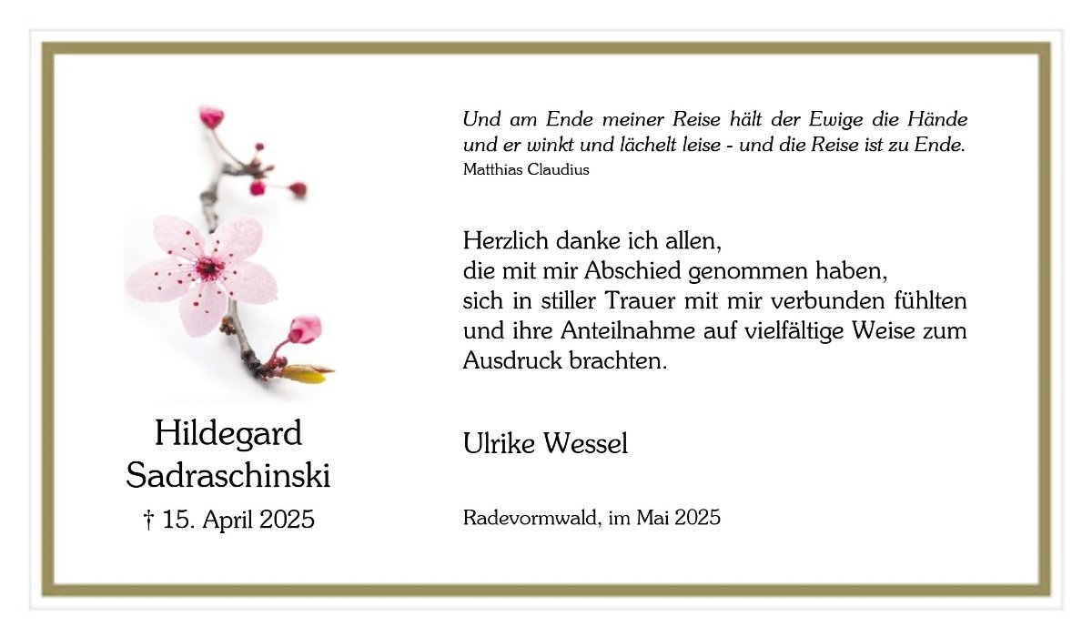 wir wünschen Ihnen für die kommende Zeit viel Kraft und dass es Ihnen gelingt, dankbar auf die positiven Erinnerungen zurückzublicken. Diese Gedenkseite möge Ihnen dabei helfen, Ihre Trauer zu teilen und das Andenken gemeinsam wachzuhalten.