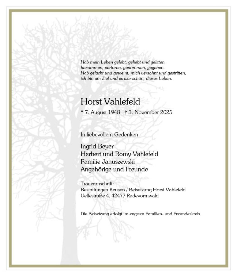 wir wünschen Ihnen für die kommende Zeit viel Kraft und dass es Ihnen gelingt, dankbar auf die positiven Erinnerungen zurückzublicken. Diese Gedenkseite möge Ihnen dabei helfen, Ihre Trauer zu teilen und das Andenken gemeinsam wachzuhalten.