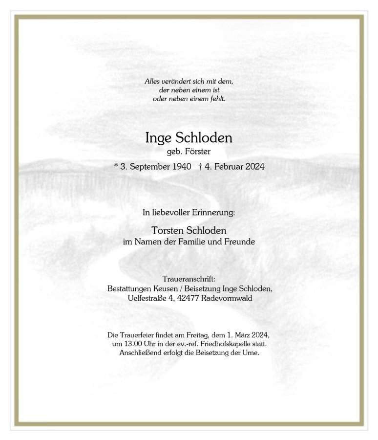 Sprechen Sie im Kondolenzbuch den Hinterbliebenen Ihr Beileid aus und teilen Sie persönliche Gedanken und Erinnerungen mit anderen.