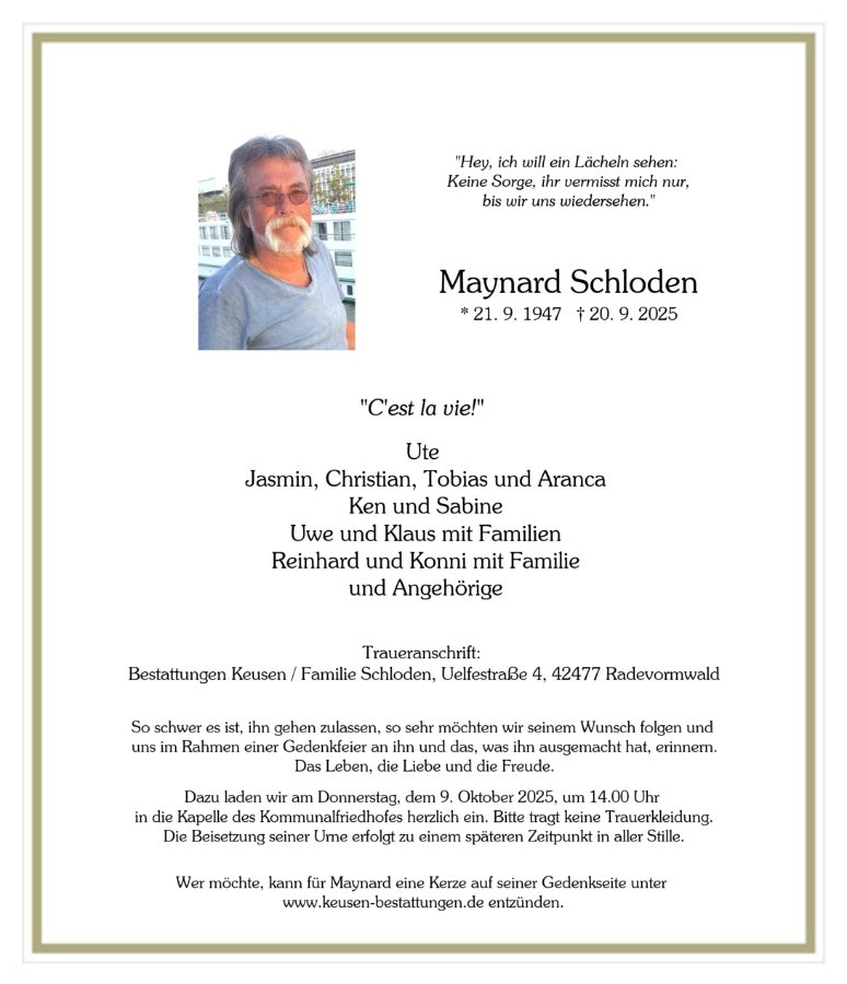 Donnerstag, 9. Oktober 2025 14.00 Uhr