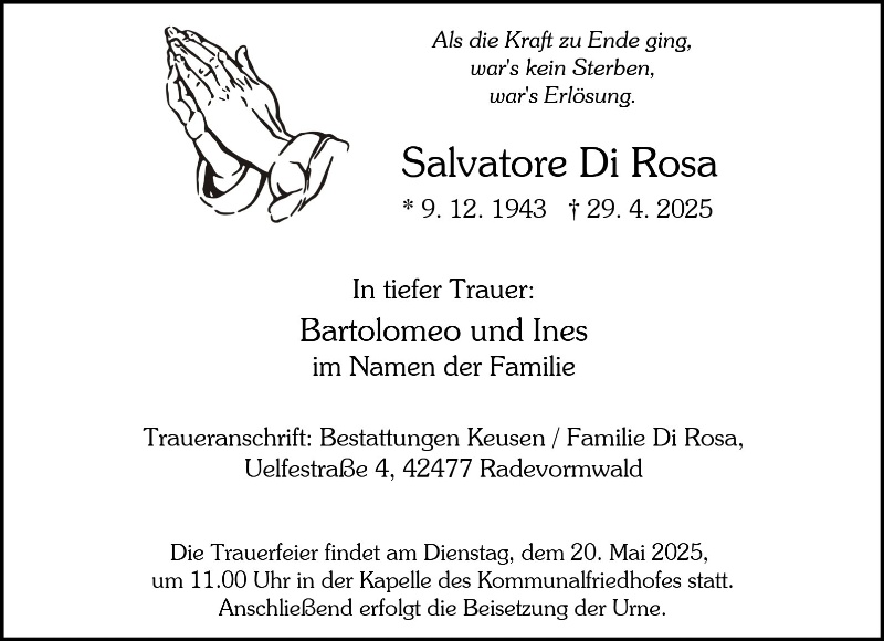 wir wünschen Ihnen von Herzen viel Kraft, dass Sie Menschen um sich haben, die Ihnen in dieser schweren Zeit beistehen und Halt geben. Zusätzlich können Sie auf dieser Gedenkseite Erinnerungen teilen und so das Andenken gemeinsam wachhalten.