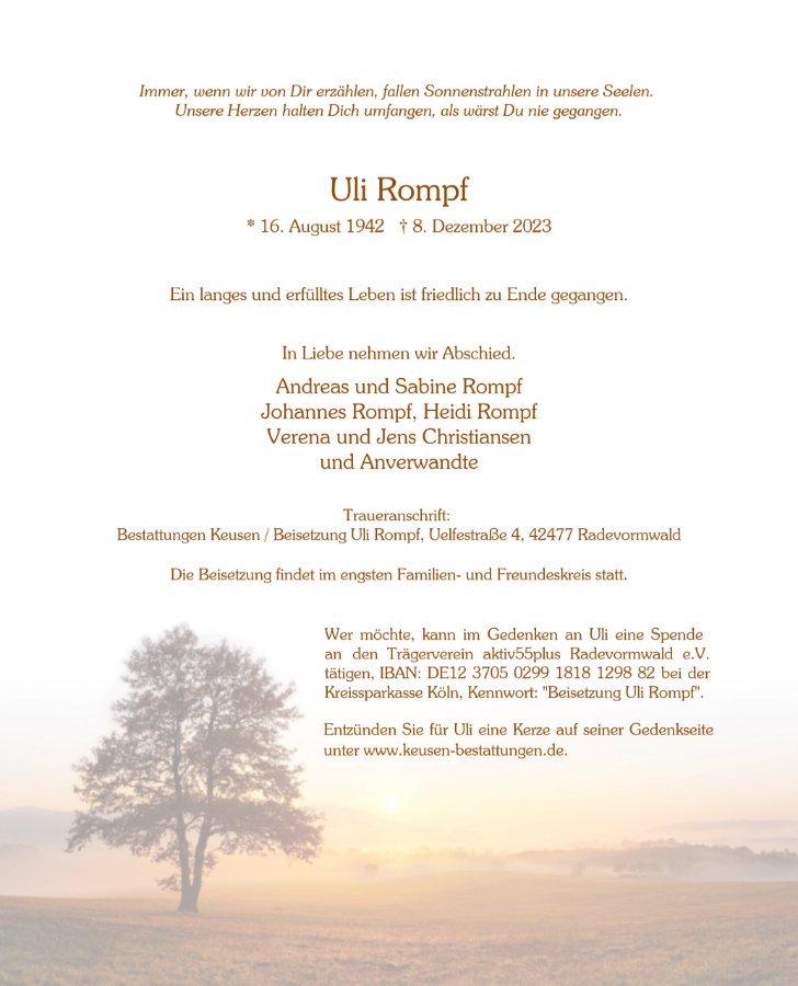 Du fehlst einfach! Am Tisch bleibt dein Platz leer und trotzdem bist du dabei. Wir denken an dich, reden über dich und erinnern uns an viele lustige und ernste Gespräche.
